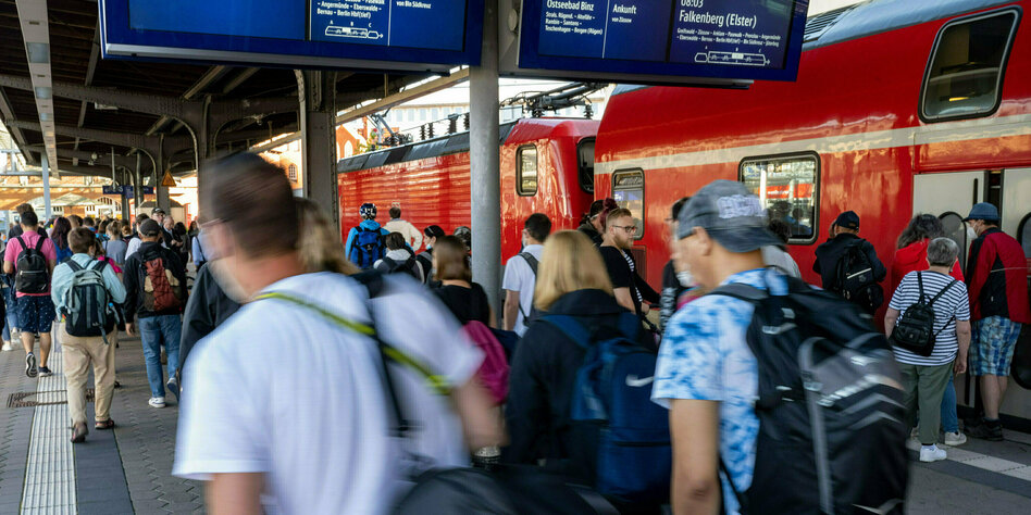 IMG Bild: Bahnreisende zu Beginn der Sommerferien in Stralsund