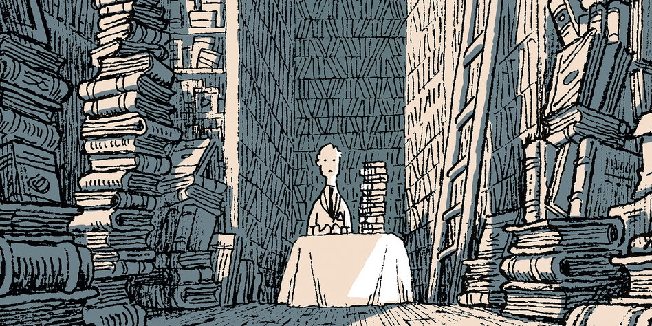 > Auf Andi Watsons zittrigen Tuschezeichnungen von „Die Lesereise“ wird
