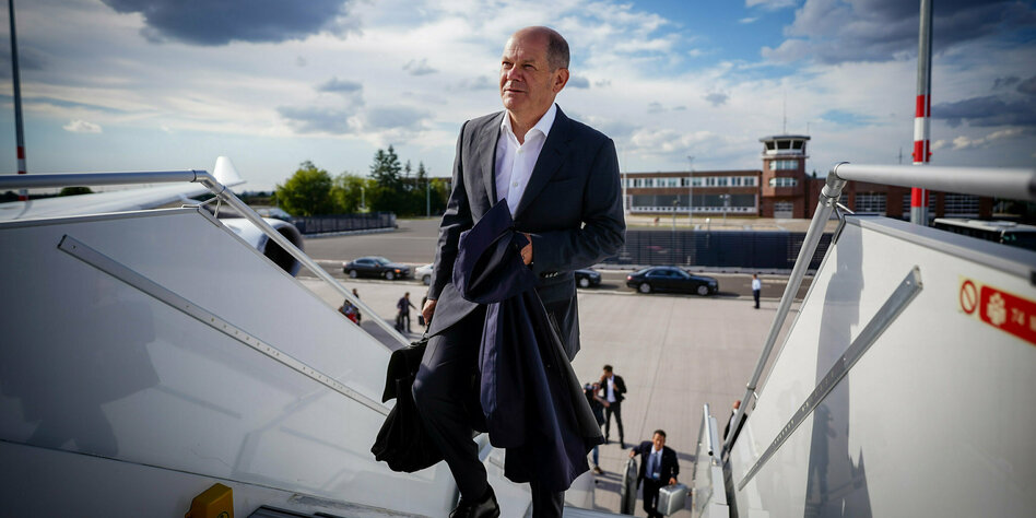 IMG Bild: Der Mann mit der Aktentasche: Olaf Scholz auf dem Weg zum Gas – äh – nach Kanada