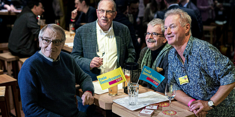 IMG Bild: Haben schon bessere Wahlabende erlebt: FDP-Mitglieder am Sonntagabend in Hannover