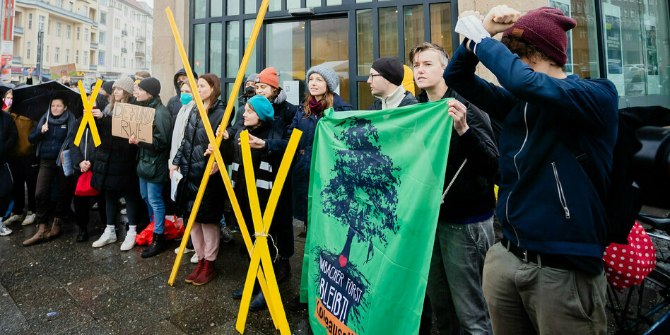 beginnen, machen sich Berliner Aktivist:innen vor der