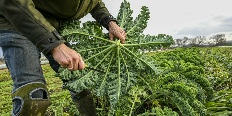IMG Bild: Zu teuer? Grünkohlernte auf dem Feld eines Biogemüsebetriebs bei Potsdam