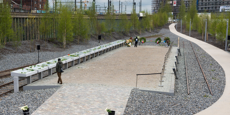 IMG Bild: Gedenkort im Hamburger Lohsepark: Erinnert wird hier an Jüd:innen wie an Sinti:zze und Rom:nja