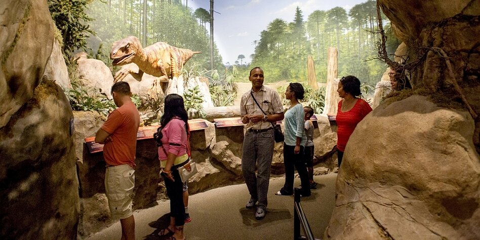 IMG Bild: Dinosaurier-Darstellung im religiös orientierten Creation Museum in Petersburg, Kentucky, USA