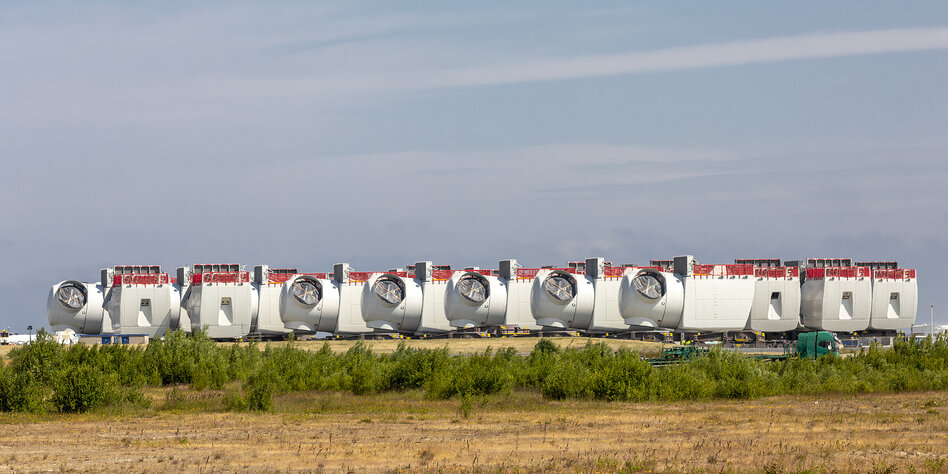 IMG Bild: Bauteile für Windanlagen im Freilager der Siemens-Tochter Gamesa in Cuxhafen