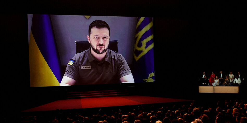 IMG Bild: Auch in der Filmszene unterwegs: Wolodimir Selenski, zugeschaltet bei den Filmfestspielen in Cannes