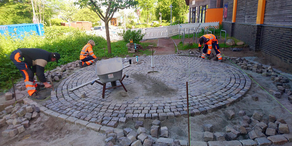 IMG Bild: Noch war nichts zu sehen: Arbeit am Gedenkort auf dem Schulgelände