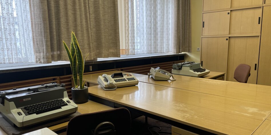 Möbel aus hellem Holz – alles in den [1][Büros der ehemaligen Zentrale des