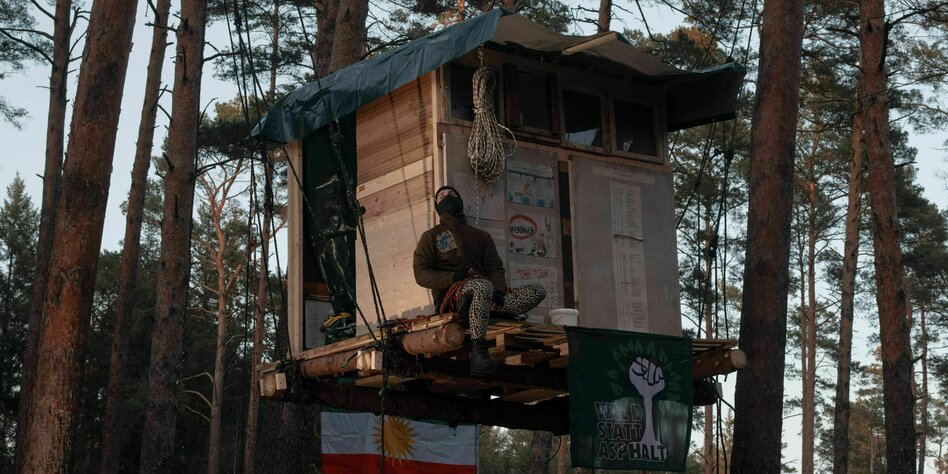 > Aktivist*innen besetzen ein Waldstück in Grünheide in Brandenburg,