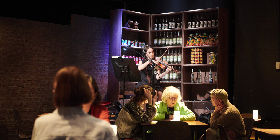 zufällig an Vierertische verteilt. Das Schauspieler:innen-Quintett gibt