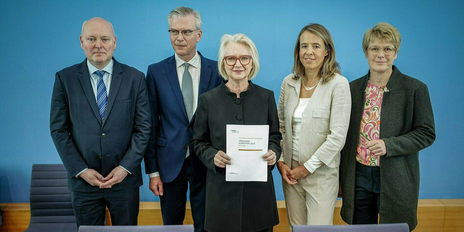 IMG Bild: Achim Truger, Martin Werding, Monika Schnitzer, Ulrike Malmendier und Veronika Grimm (v.l.n.r) stellen ihr Gutachten vor