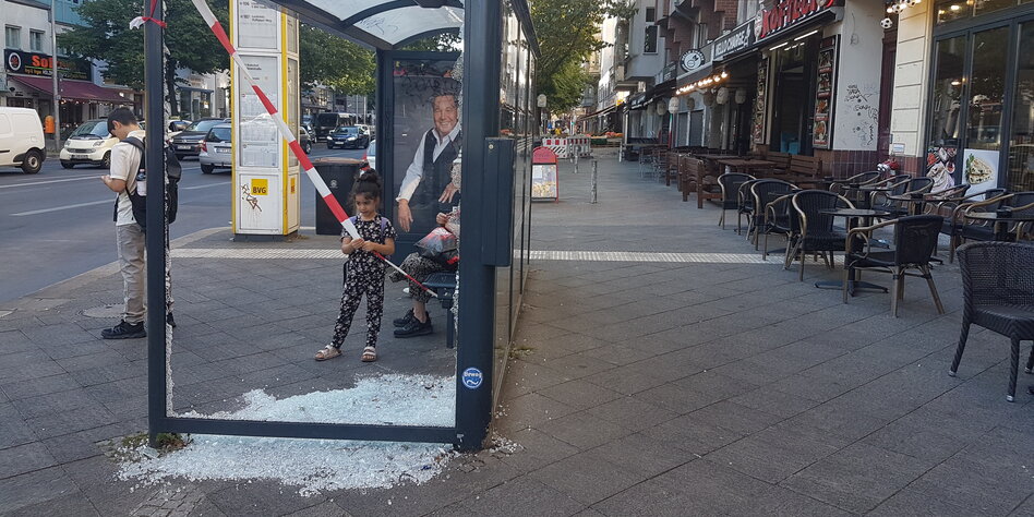 Berlin taz | Neben der Bushaltestelle befindet sich ein [1][Scherbenmeer],