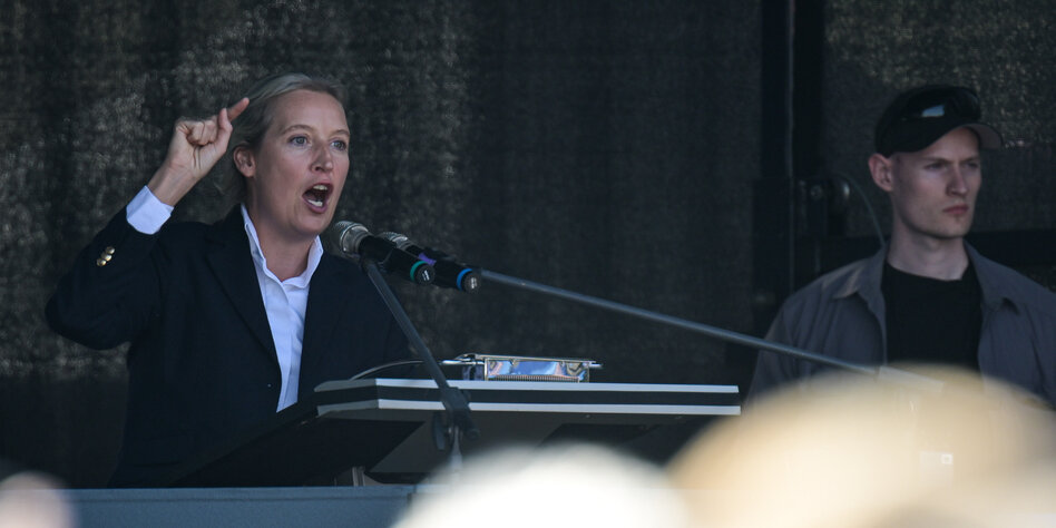 IMG Bild: Antifeministen unter sich: Alice Weidel bei einer AfD-Wahlkampfveranstaltung am 31. August 2024 in Erfurt