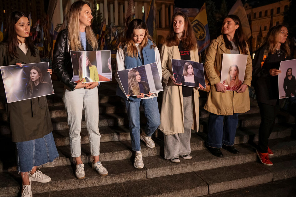 Ukrainische Familien von inhaftierten Soldaten demonstrieren regelmäßig für