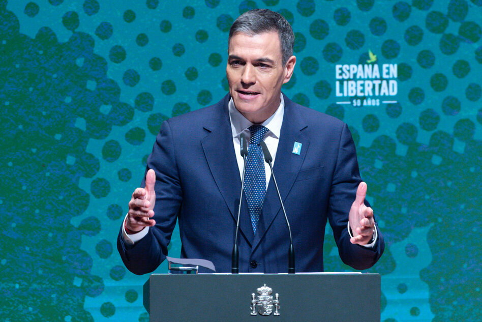 IMG Bild: Premierminister Sanchez bei der Eröffnung des Gedenkjahres „50 Jahre in Freiheit“ am 8. Januar