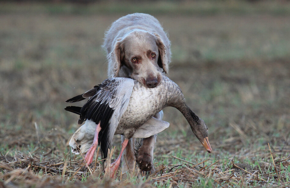 flugunfähig gemacht und im Schilf versteckt, damit die Hunde lernen können,