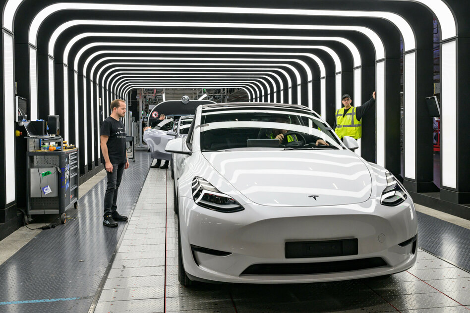 Tesla in seinem Werk in Grünheide in Brandenburg kranken