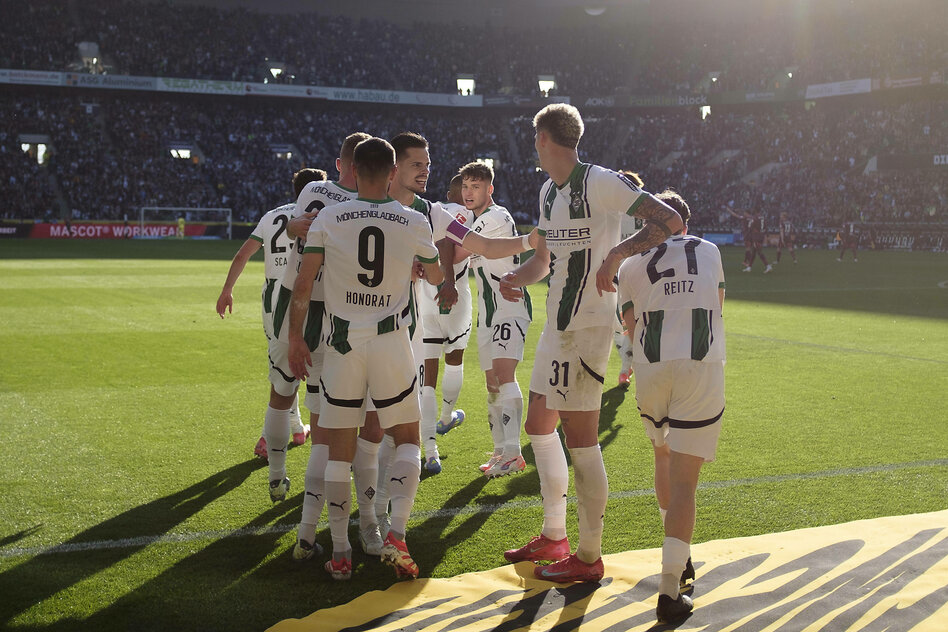 IMG Bild: Auf der Sonnenseite: kollektive Gladbacher Freude über den Führungstreffer