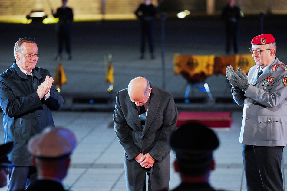 Zapfenstreich ab.“ Scholz verbeugt sich vor der Tribüne, einmal, zweimal.
