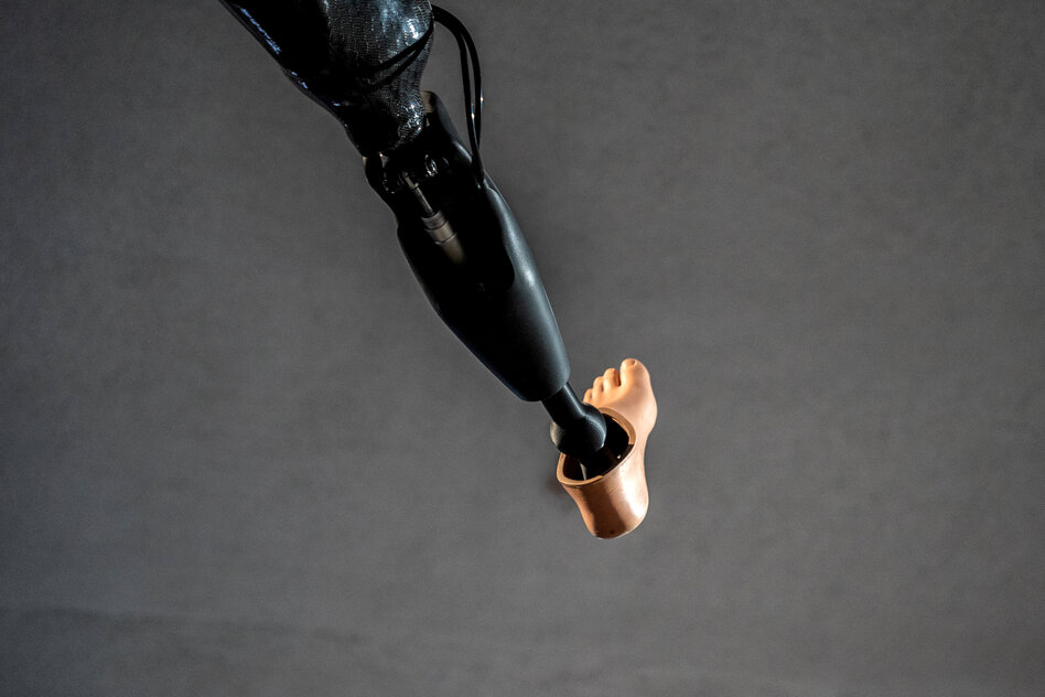 IMG Bild: Was bleibt vom Heldentum im Krieg? Eine Prothese von Künstler Nikita Kadan in der Ausstellung „Woraus wir gemacht sind“