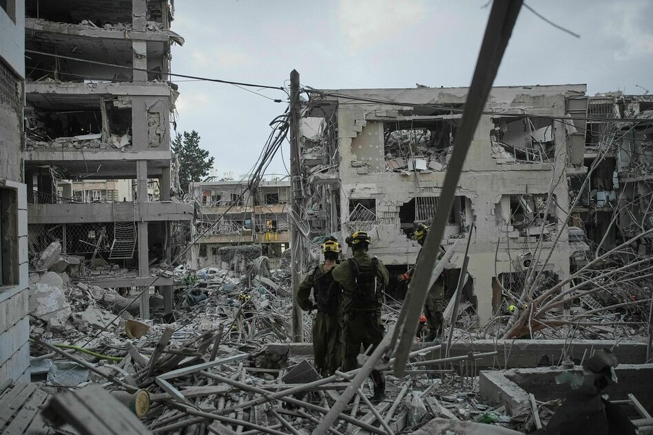 ein Wohnviertel von iranischen Raketen getroffen wurde. Das zerstörte