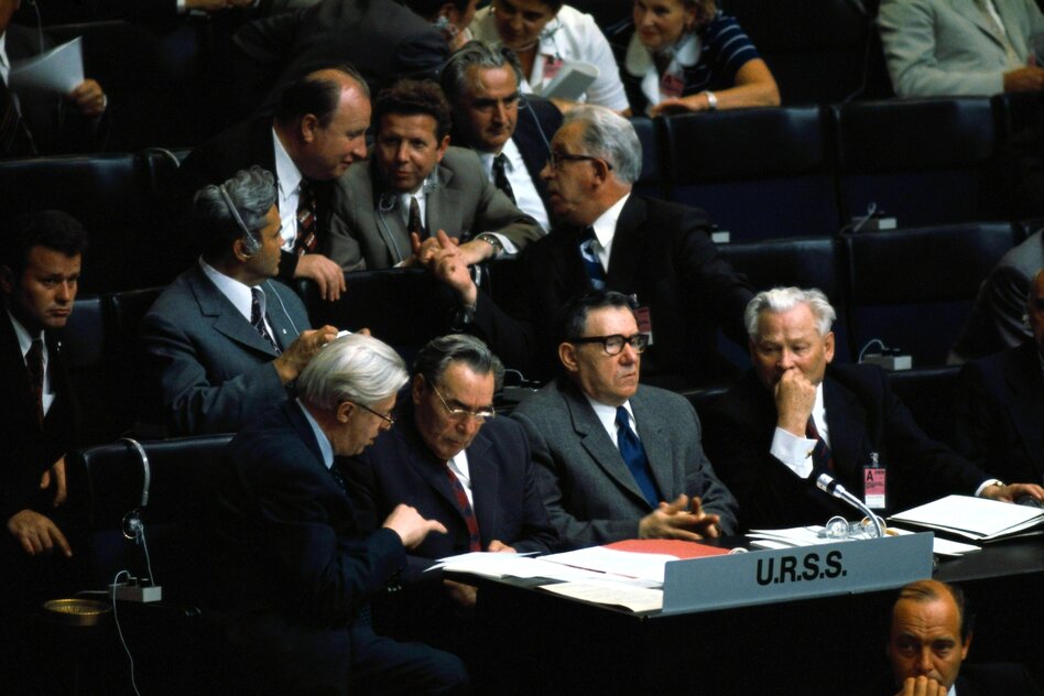 IMG Bild: Helsinki 1975 – die russische Delegation mit Leonid Breschnjew und Andrey Gromyko braucht noch Beratung