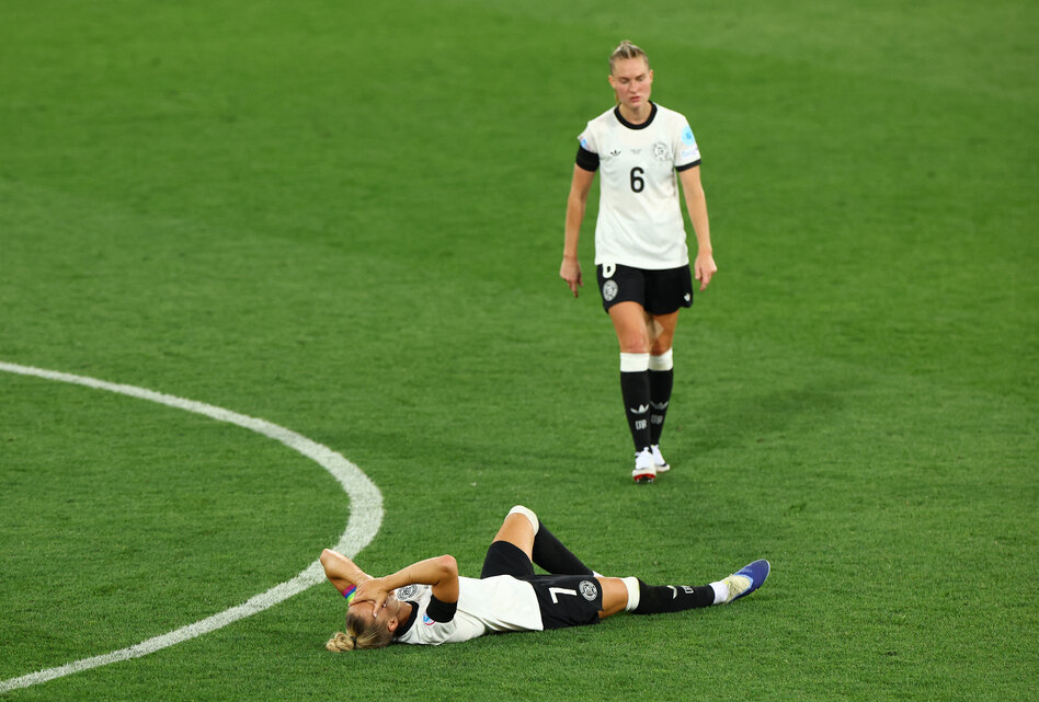 > aber Kapitänin Giulia Gwinn. Sie verletzt sich schwer am Knie.