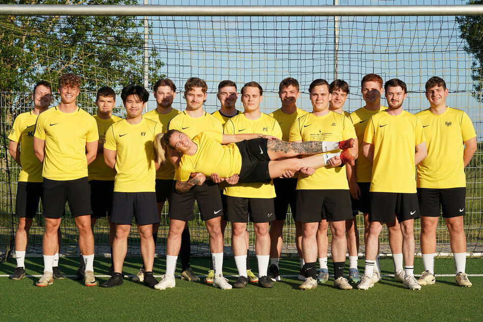 IMG Bild: Gut aufgehoben: Julia Losert im Kreis ihrer Mannschaftskameraden vom SV Geinsheim