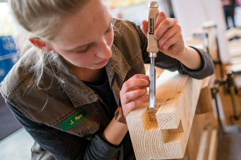 IMG Bild: Muss sich während der Ausbildung oft sexistische Sprüche anhören: junge Frau in einer Tischlerei
