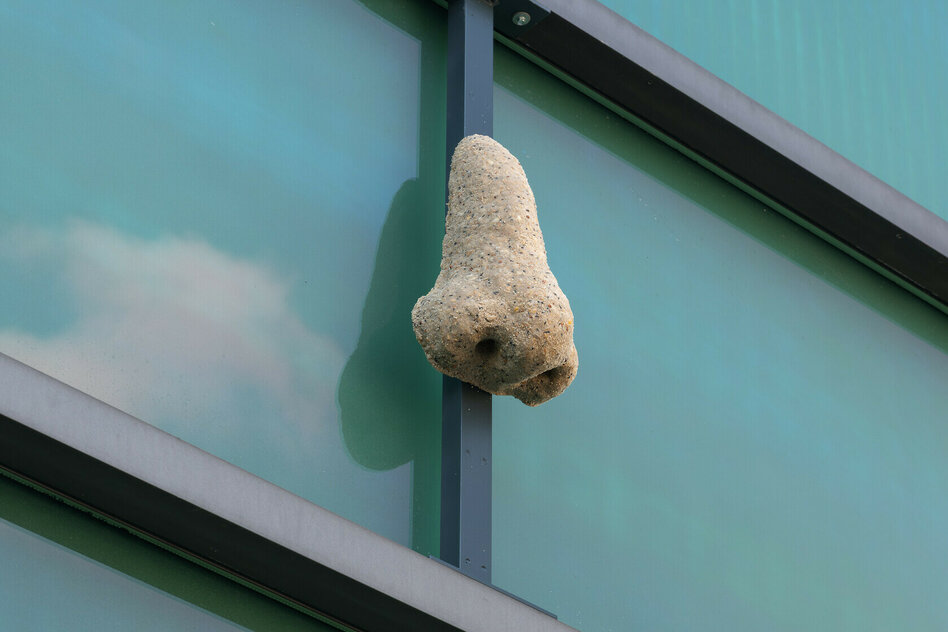 IMG Bild: Vorbild war das Organ des Vaters: Die Nase an der Fassade besteht unter anderem aus Vogelfutter und wird allmählich abgeknabbert