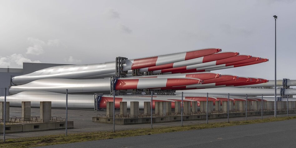 IMG Bild: Sorgt immer wieder für Probleme und Milliardenverluste: Siemens Gamesa, hier: Rotorblätter vor dem Werk in Cuxhaven