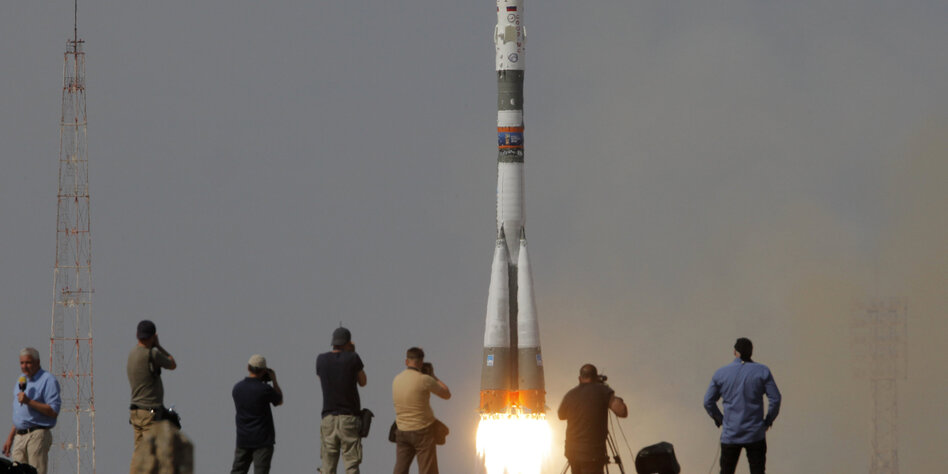 IMG Bild: Guten Flug, Astro-Alex! Start der Sojus-Rakete vom russischen Weltraumbahnhof Baikonur