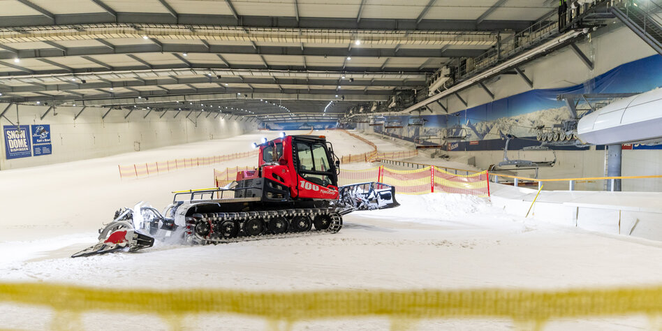 IMG Bild: Fast wie in den Alpen: Ein Pistenbully präpariert die Abfahrt im Snow Dome Bispingen