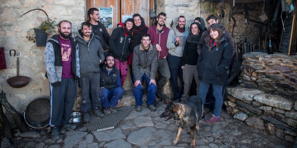 IMG Bild: „Weg vom Kapitalismus“: die Bewohner von Fraguas vor ihrem Gemeinschaftshaus