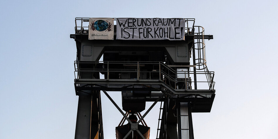 Aufschrift „Wer uns räumt, ist für Kohle!“ entrollt. Rund 20 Personen seien