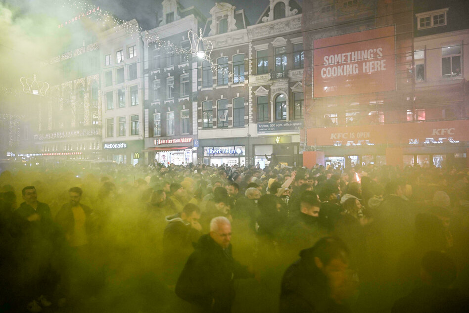 IMG Bild: Unklare Lage: Fußballfans von Maccabi Tel Aviv vor dem Spiel in Amsterdam am 7. November