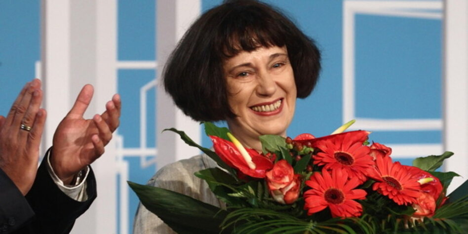 IMG Bild: Applaus und Blumen für Olga Martynova.