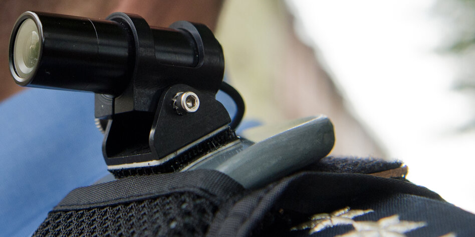 IMG Bild: Seltener Anblick: Bodycam auf der Polizist:innen-Schulter