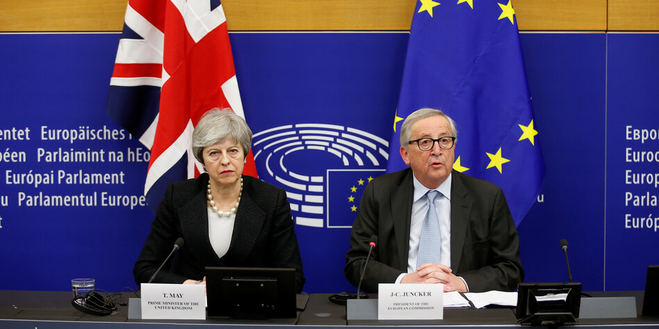 IMG Bild: Doch noch ein tragfähiger Kompromiss? Großbritanniens Regierungschefin Theresa May und EU-Kommissionspräsident Jean-Claude Juncker am Montag in Straßburg