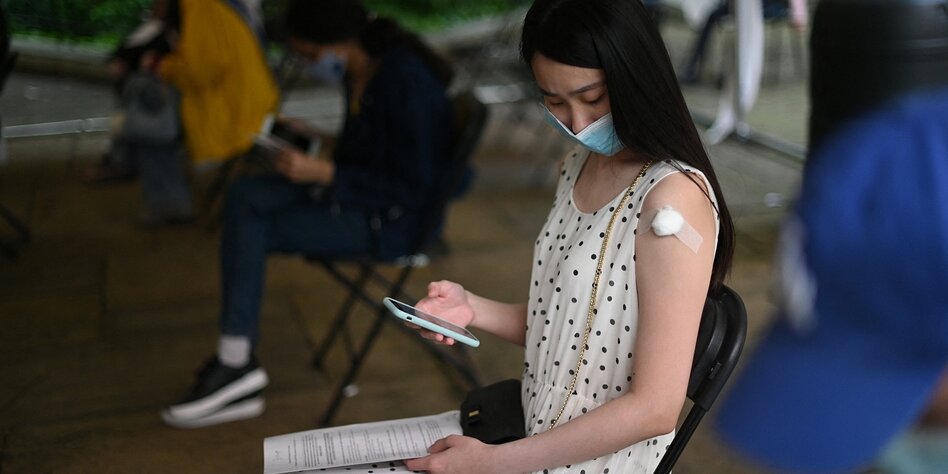 IMG Bild: Gehört jetzt auch zu den 60 Prozent der geimpften Brit*innen: Studentin im Londoner Impfzentrum