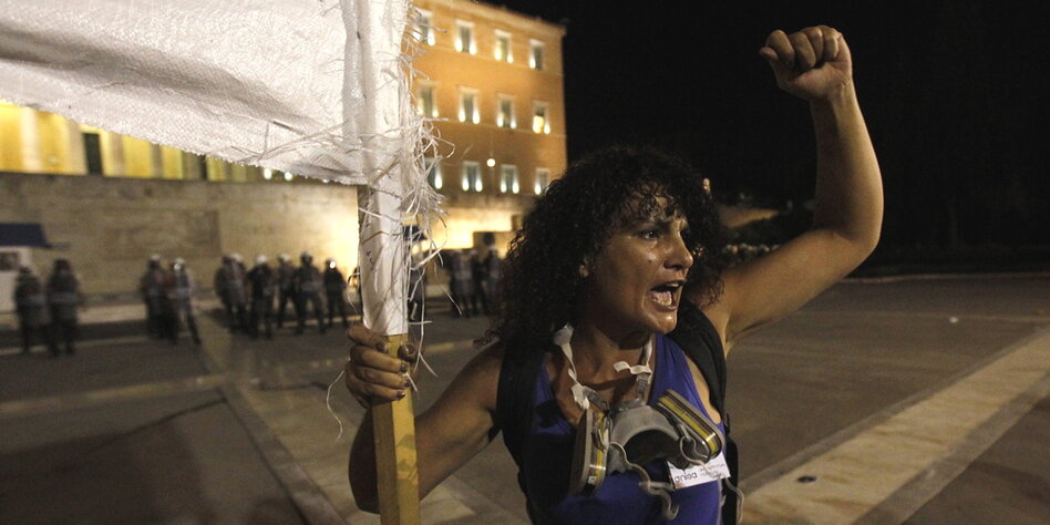 IMG Bild: Griechische Weltbürgerin? – Proteste in Athen.