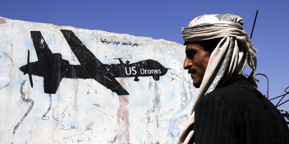 IMG Bild: Hilft Ihre Internetnutzung, eine Drohne zu steuern? – Graffiti im Jemen, wo die USA seit Jahren einen Drohnenkrieg führen