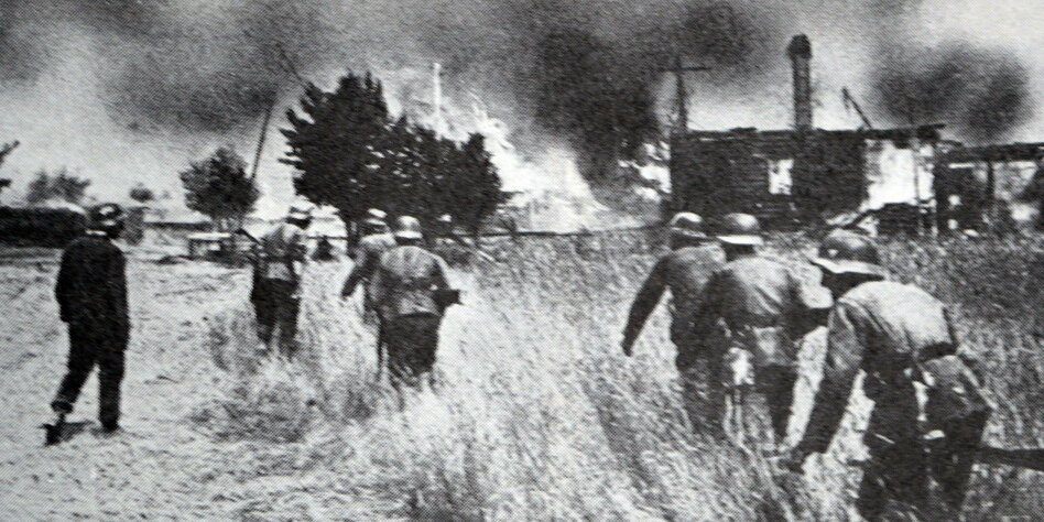 IMG Bild: Deutsche Truppen überfallen ein Dorf zwischen Minsk und Smolensk