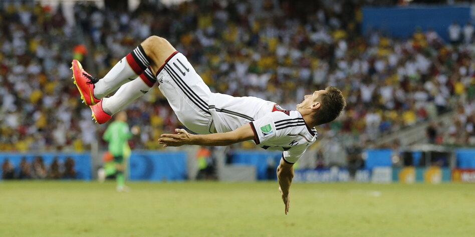 IMG Bild: Auch ohne Kontrolle: Miroslav Klose beim missglückten Jubel-Salto.
