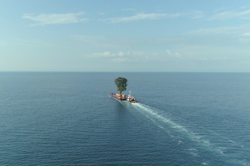 Der Schiffstransport der mächtigen Bäume über das Meer erinnert Jashi an