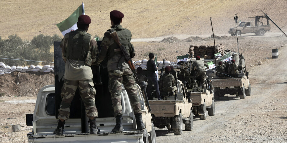 IMG Bild: Während die EU eine politische Lösung fordert: von der Türkei unterstützte Kämpfer in Nordsyrien