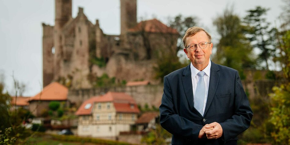 IMG Bild: Zwischen Mittelalter und Anarchie: der dienstälteste deutsche Landrat, Werner Henning (CDU), vor der Burg Hanstein