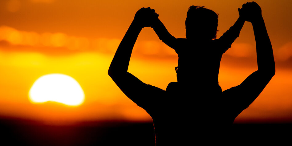 IMG Bild: „Sisyphosarbeit“ im Sonnenuntergang: Vater mit Sohn
