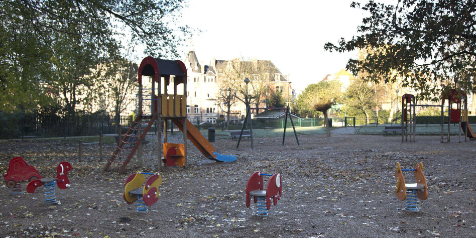 erzählt die Mutter ein bisschen stolz. Und auf dem Spielplatz unten im Park