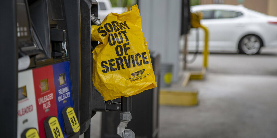 IMG Bild: Tankstelle ohne Benzin in Jacksonville, North Carolina, am 11. Mai